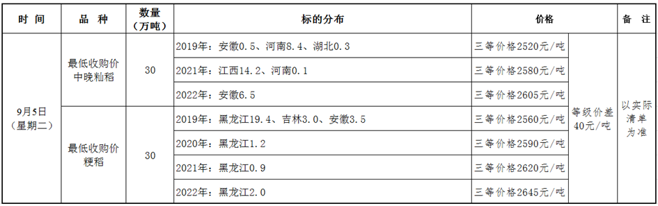 注:销售价格等级差40元/吨;本交易安排为预公告,交易日的实际销售数量以国家粮食交易中心官网发布的交易清单为准。